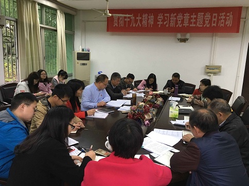 支部书记曾庆生带领全体党员对新党章进行了学习,并就新修订的党章内容进行了认真的解读。他指出,党章虽然篇幅不长,但每段内容,每个观点都以科学的理论为基础,内涵丰富,富寓意深。学习的目的在于应用,学好新党章,目的是贯彻好党章。要做到内化于心,坚定理想信念,强化党性意识。坚持把立德树人、服务师生、推动发展作为思考问题和开展工作的根本出发点和落脚点。他要求全体党员自觉用《党章》规范自觉的一言一行,认真学习党章、遵守党章、维护党章,做到心中有党、心中有责、心中有岗。同时要求党员干部要发挥先锋模范作用,带头示范、丰富形式、引领大家进行学习,将党的十九大提出的新思想、新观点、新论断、新方略,转化为推动工作的具体举措,在做好自己的本职工作时,为中国特色社会主义事业出一份力,为实现中华民族伟大复兴的中国梦添砖加瓦。
