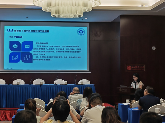 工作会议之后,由继续教育学院赵桂芝副院长主持,会议进行了三个业务专题培训。继续教育学院招生与教务办公室主任汤晓兰、校外教学点管理办公室主任彭金生和湖南世纪超星公司刘人洋分别做了《新形势下米兰官方端网站校外教学点教学与学籍管理》《新时代下米兰官方端网站教学点设置与管理》;《米兰官方端网站校外教学信息化管理系统操作》专题培训。
